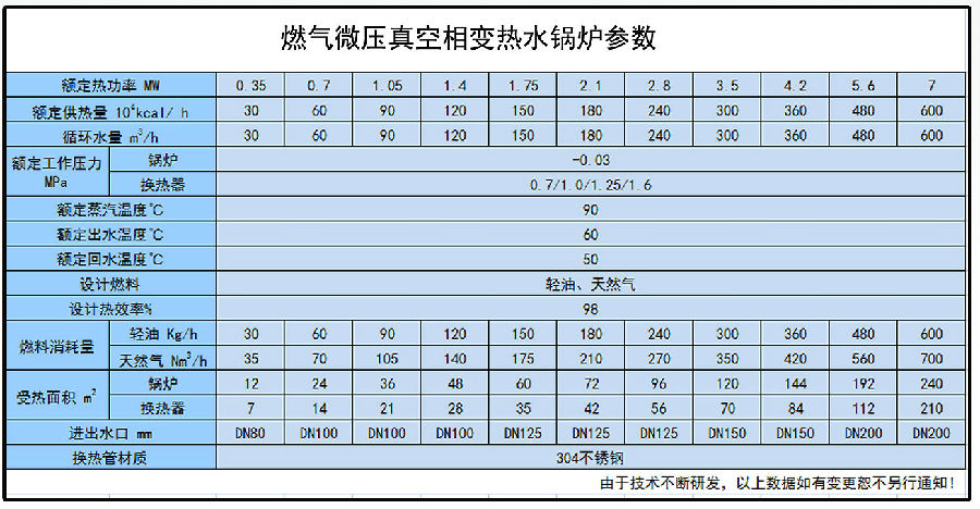 燃气微压相变锅炉性能特点: